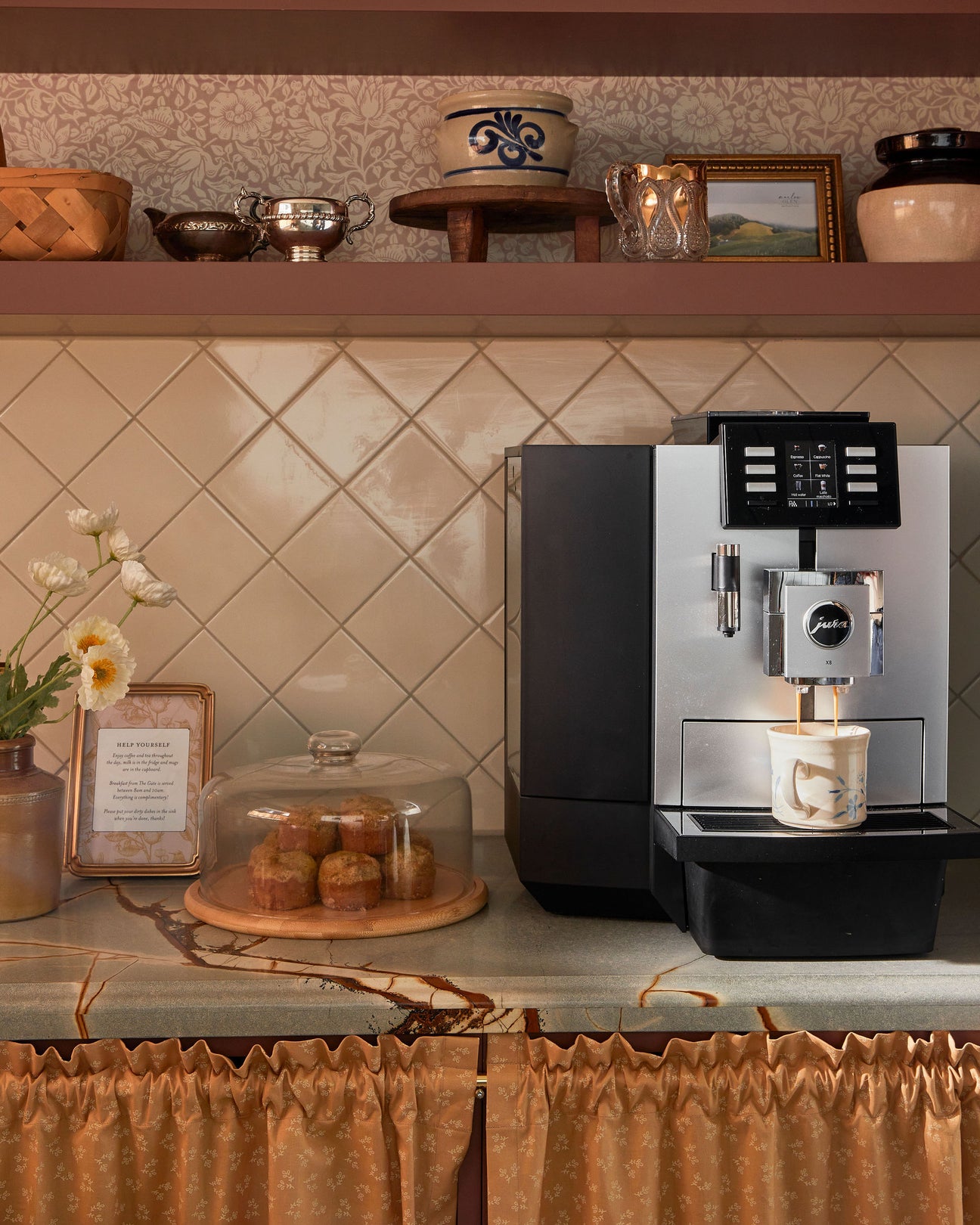 Located above the Parlour, this is the perfect place to start or end your day. Help yourself to a yoga mat or meditation pillow, and load a class on the Samsung Frame TV. For special events, this flex space can transform into a private dining room, meeting space or bridal suite.