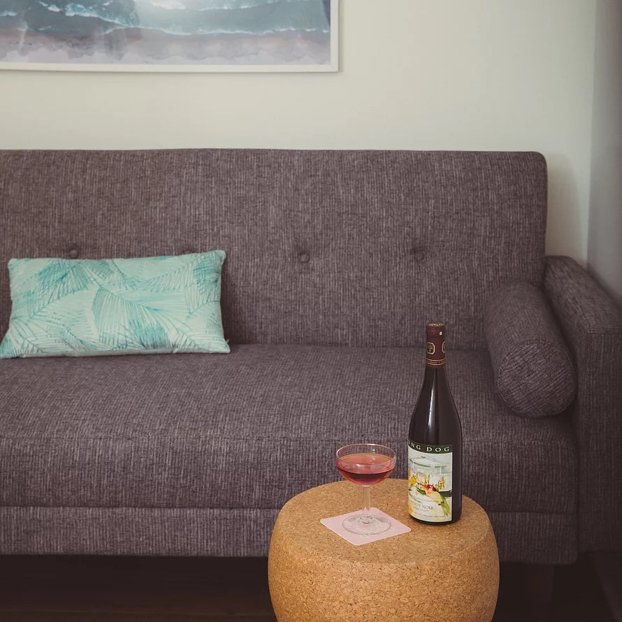 This is the perfect room for those looking for a little extra space to fit the whole squad. Newly designed in 2022, this extra spacious room features two double beds and retro-femme lounge space for you and your crew to sip and sleep in style. More photos coming soon!