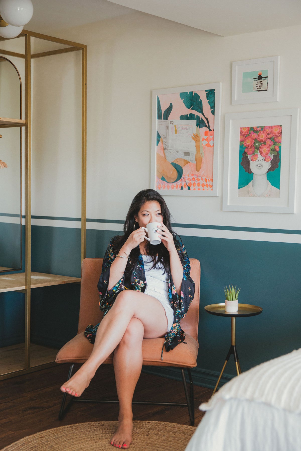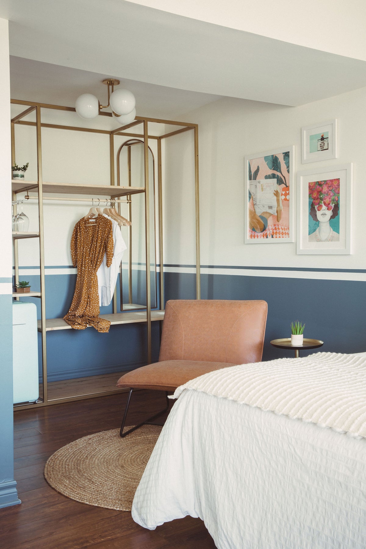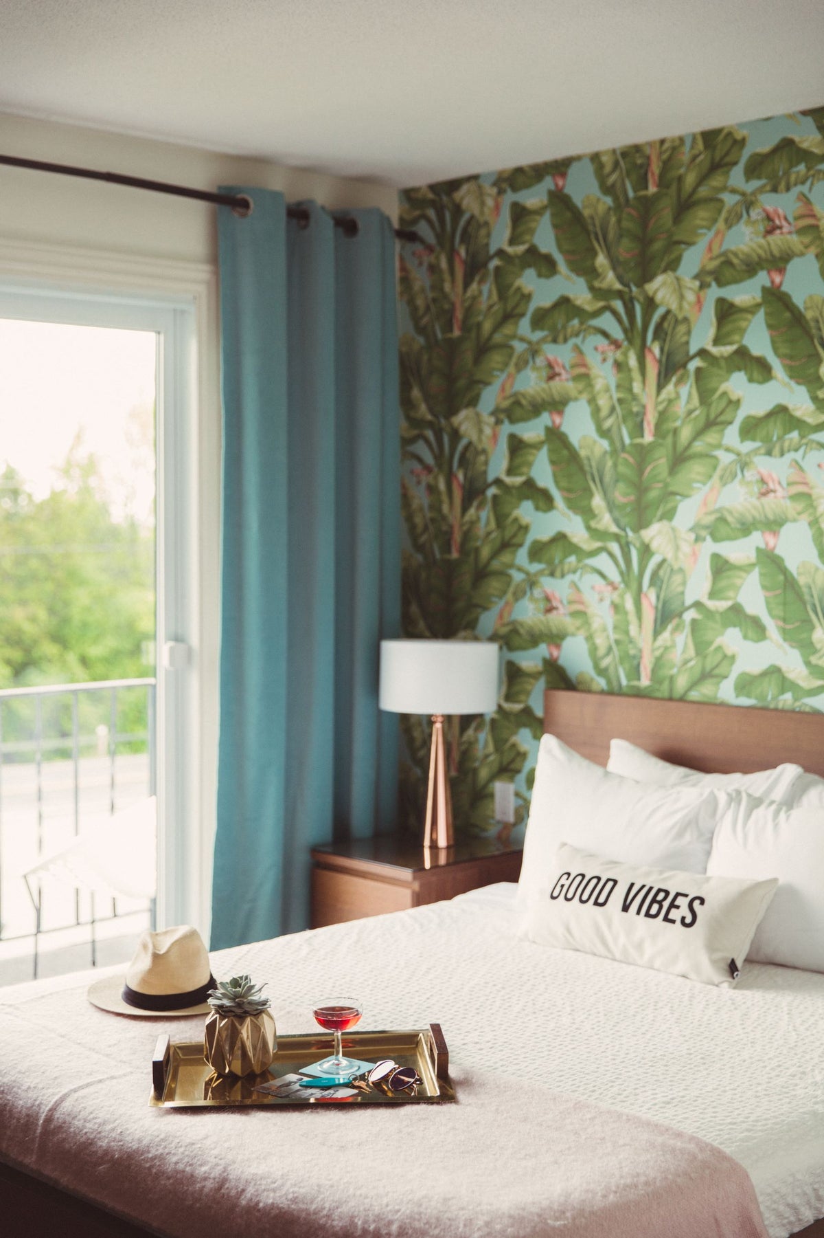 This newly designed room is great for a couple of friends or the whole crew. With funky wallpaper, mid-century flare, and a mix of copper and brass accents, The Studio is perfect for a photo-worthy stay.