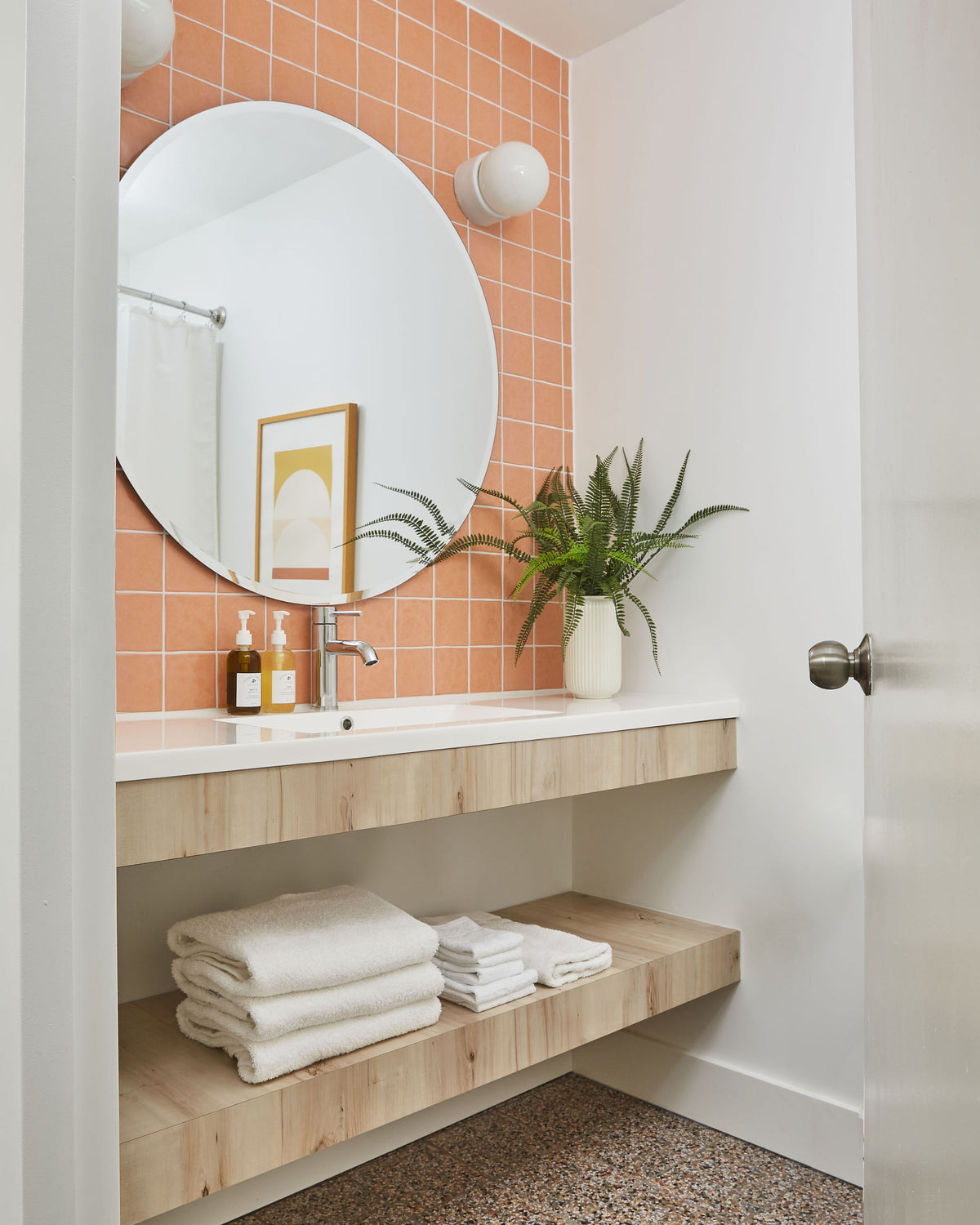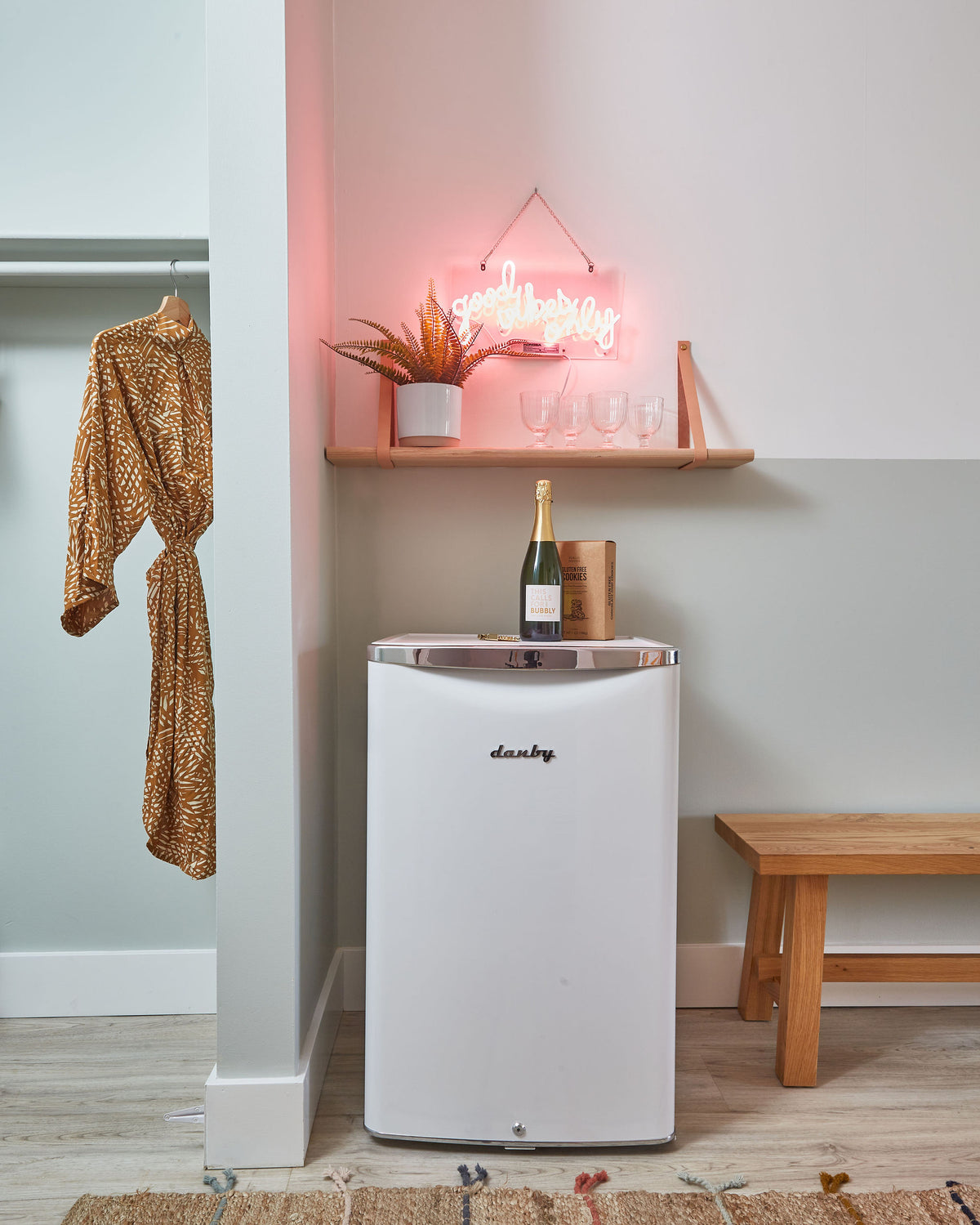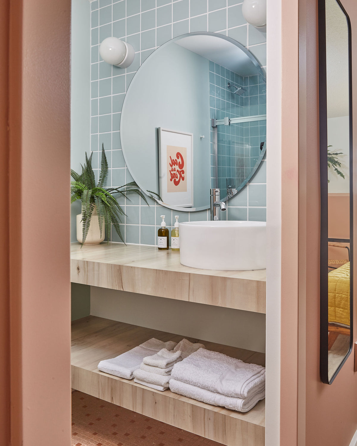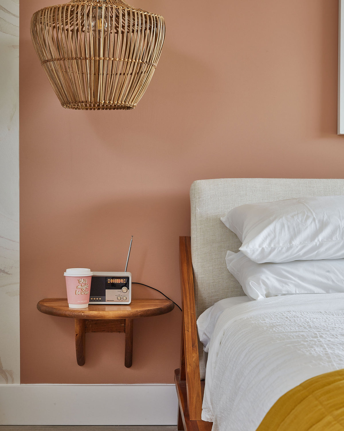 Our king rooms are what we like to call “motel luxe”, with a designer king bed, sun-bleached wallpaper and blush glow. Enjoy a spacious patio, and watch the sun go down over the pool. For couples looking to level-up the romance, we can add-on bubbly for your arrival.